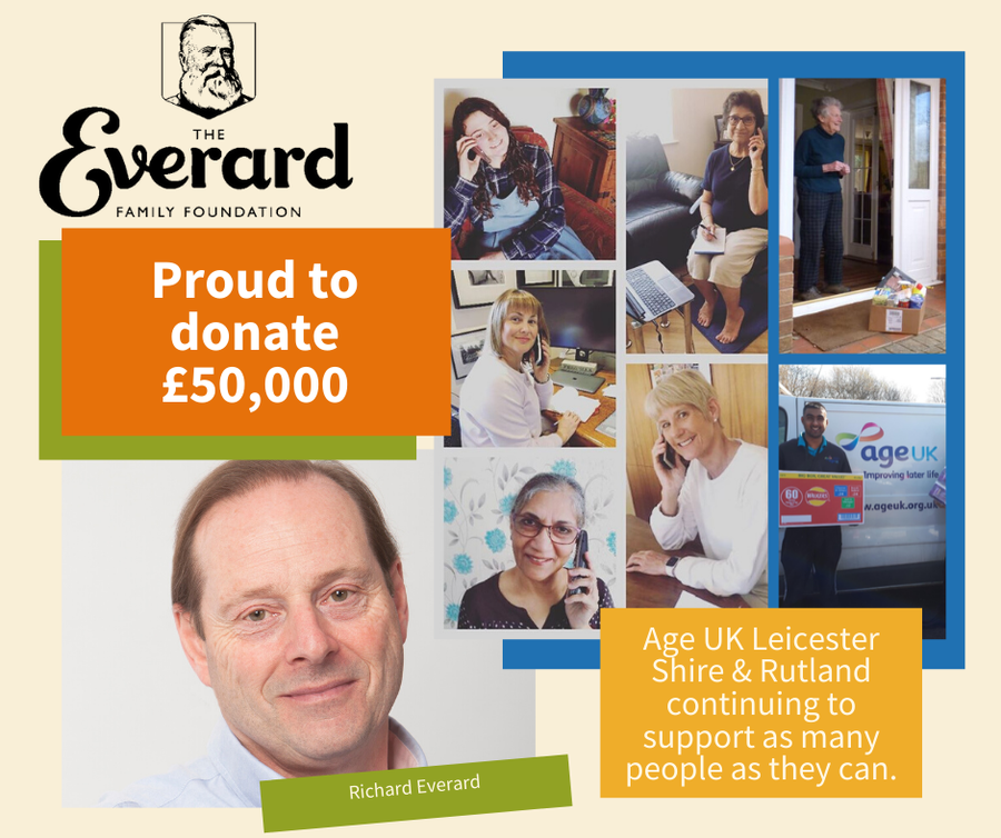 Over the last 31 years, the Everard Family Foundation has donated over £2.4 million to many local causes. Richard Everard shared, “I admire the work done by Age UK Leicester Shire & Rutland and have been delighted to support them for many years. Ensuring that the older people in our community are well looked after is a mission close to my heart and this current crisis brings many additional challenges. Therefore, after speaking to Tony Donavan, the family were unanimous that we should make a donation to help them to maintain their crucial support.”
